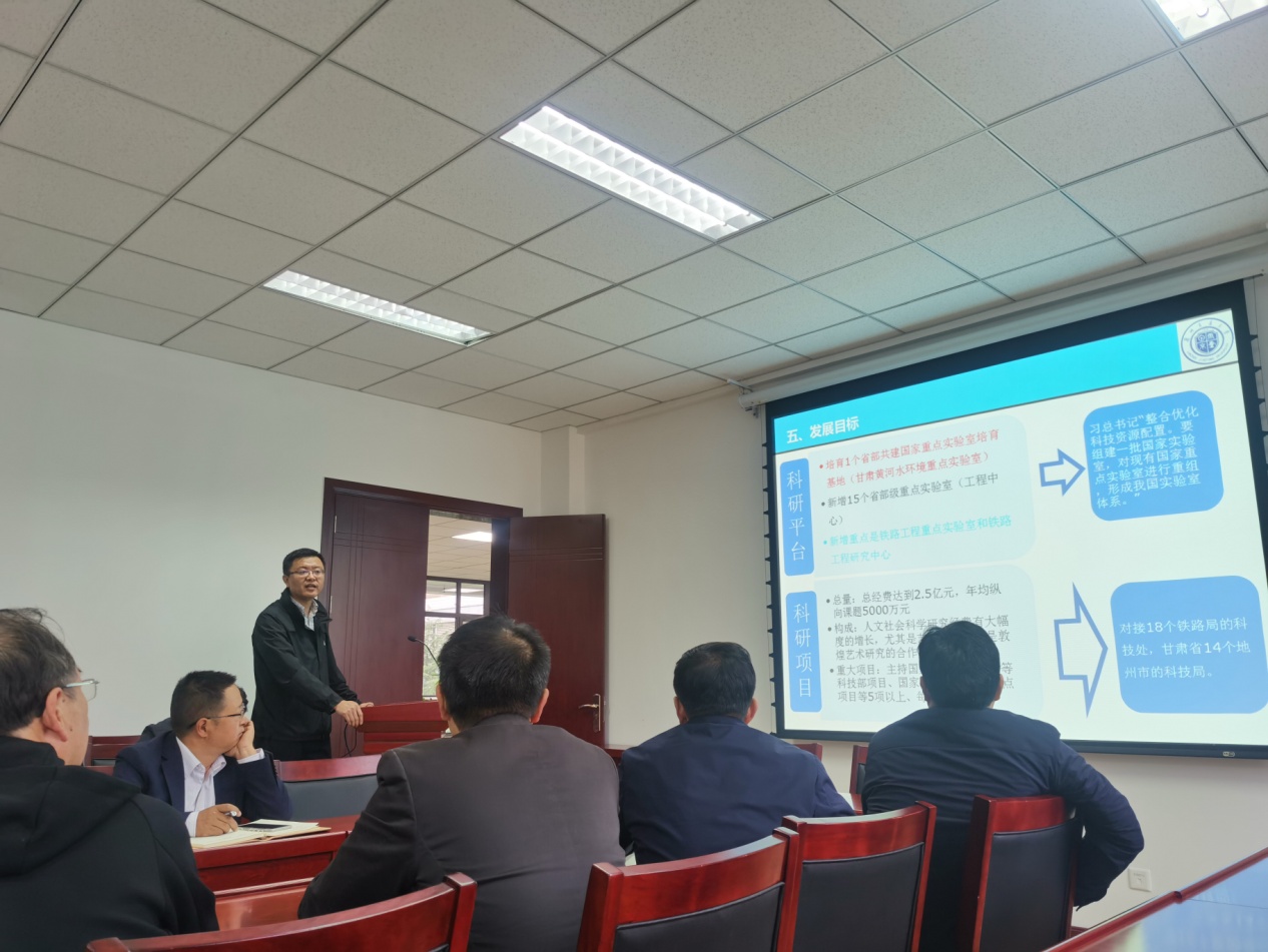 一是要高起点。“十四五”时期,是兰州交通大学创建高水平教学研究型大学的重要阶段,承上启下、继往开来。编制学校“科学研究与社会服务规划”,要全面贯彻习近平同志关于科技创新和成果转化的系列讲话精神,要着眼于全球科技创新趋势、全国教育发展大局、全国铁路发展大业和甘肃经济社会发展的美好事业,准确把握机遇与挑战,精准确立方向与思路,科学制定举措与路径,做到高起点定位、高水平规划,为学校科学研究和服务社会事业高质量发展谋好篇、布好局、定好调。二是要聚队伍。要紧密围绕高水平大学建设目标,进一步建立健全人才工作机制,拓宽引才渠道,搭建聚才平台,优化用才环境,提升引才育才水平;要紧密围绕国际学术前沿、国家战略发展目标和经济社会发展趋势,以人才发展与优势学科的匹配度为标准,明确引才目标任务、重点领域和优先次序;要坚持“不求所有,但求所用”的原则,柔性引进一批拔尖创新人才和高水平创新团队,积极为他们建立工作条件、工作平台和工作环境,切实发挥高层次人才的引领和催化作用;要加强青年人才队伍建设,重点扩大“四青”人才的储备,充分发挥优秀人才在高水平大学和一流学科建设中的后备军作用。三是要活机制。在项目建设方面,要以质量与创新为导向,出台新的管理办法,简化工作流程,规范工作程序,实现项目的筛选、培育、研发、推介、转化和报奖等环节的无缝衔接;在平台建设方面,要坚持“人无我有、人有我优、人优我特”原则,摸清底数,整合资源,挖掘潜力,加大考核力度,不断提升建设和管理水平;在合作交流方面,要敢于走出去,善于借力发展,通过不同层面、不同方向的联合申报,巩固优势,补齐短板,填补空白,使学校在国家级项目、团队、平台和奖项上实现突破;在服务社会方面,要继续紧密围绕服务应用型的科研方向和目标,面向国民经济建设和社会发展的主战场,从现实的紧迫需求出发,切实加强生产、生活中亟待解决的科技问题攻关,把论文写在祖国的大地上,通过逐步积累和提高,实现我校在科研项目和科研成果上新的突破和提升。