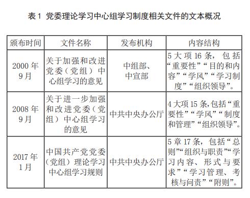 党委理论学习中心组学习制度的文本分析